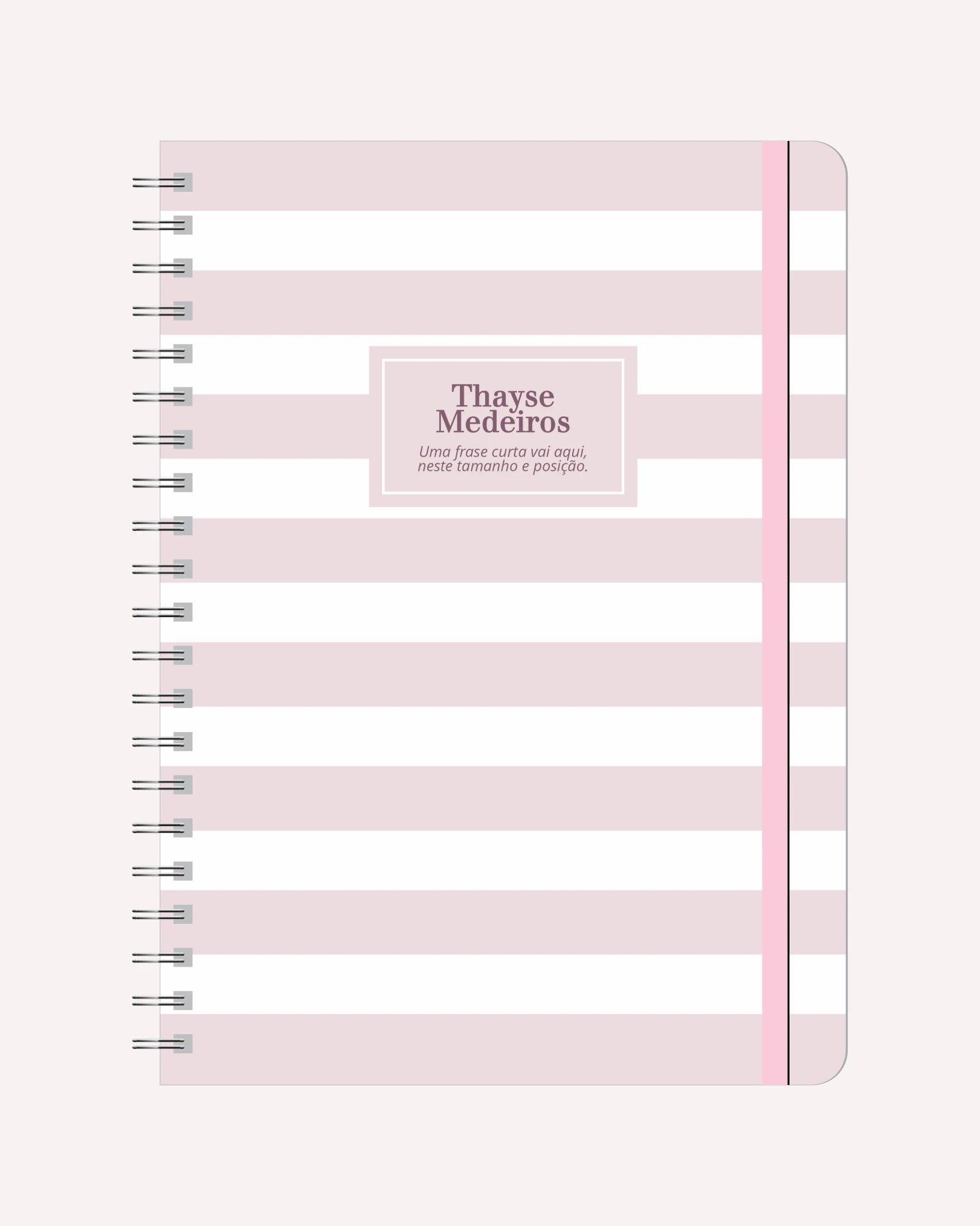 Em formato universitário, ele possui tamanho de 20×27.5cm (vertical) e capa dura personalizável com estampa, nome e frase. Também pode ser personalizado com seu tema de preferencia.